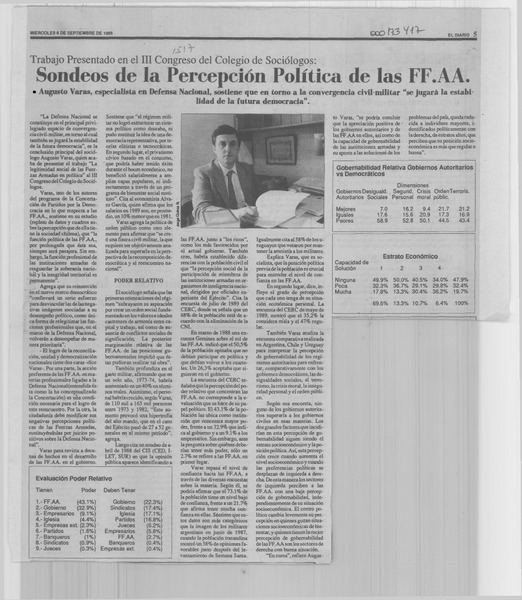 Augusto Varas "Hay que evitar que las Fuerzas Armadas sean manoseadas" [artículo] María Irene Soto.
