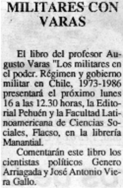 Militares en el poder - Varas, Augusto - Autores chilenos