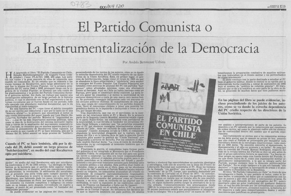 El Partido Comunista o la instrumentalización de la democracia [artículo] Andrés Benavente Urbina.