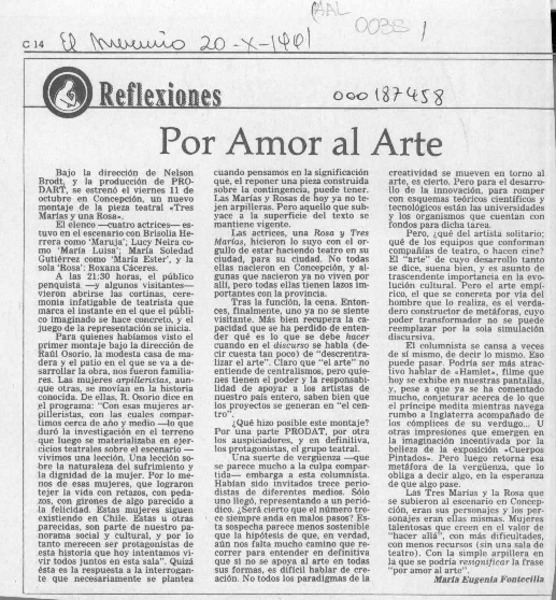 Por amor al arte [artículo] María Eugenia Fontecilla.