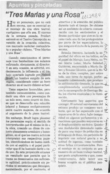 "Tres Marías y una Rosa" [artículo] Justus.