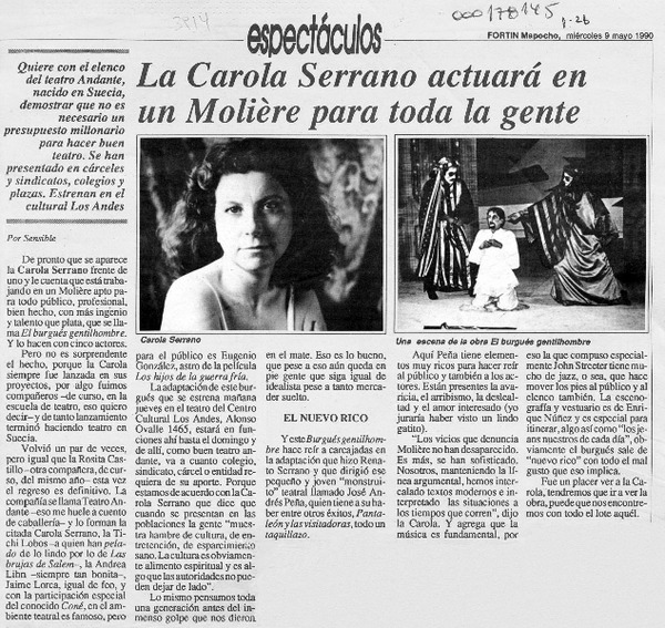 La Carola Serrano actuará en un Moliére para toda la gente [artículo] Sensible.