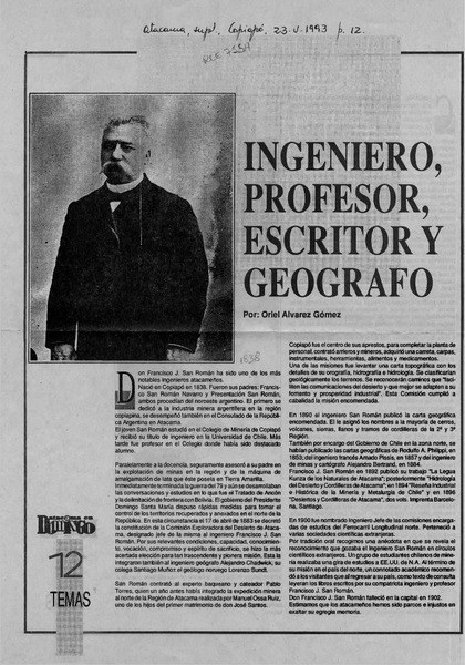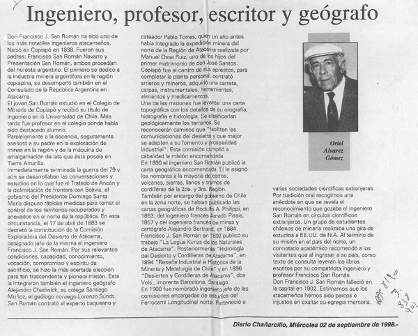Francisco J. San Román, ingeniero, profesor, escritor y geógrafo [artículo] Oriel Alvarez Gómez.