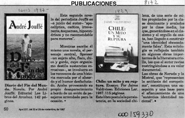 Valdivieso, Jaime - JOUFFE LOUIS, ANDRE - DIARIO DEL FIN DEL MUNDO - Chile, un mito y su ruptura