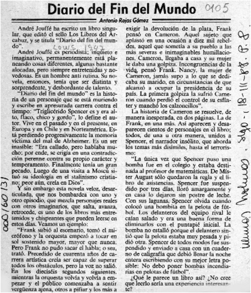 Diario del fin del mundo [artículo] Antonio Rojas Gómez.