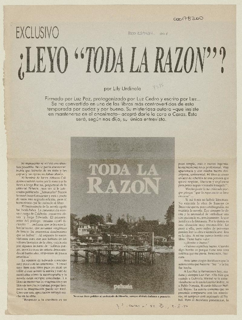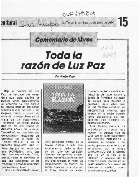 Toda la razón (de Luz Paz) [artículo] Apir.