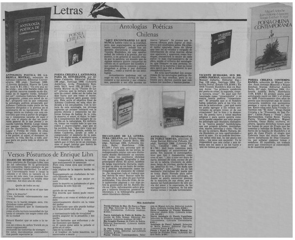 Sus mejores poemas - Diccionario de la literatura chilena - Antología poética de Gabriela Mistral - Poesía chilena contemporánea - Antología fundamental - Szmulewicz, Efraín - Huidobro, Vicente - Arteche, Miguel - Calderón, Alfonso - Massone, Juan Antonio - Scarpa, Roque Esteban - Neruda, Pablo - Mistral, Gabriela