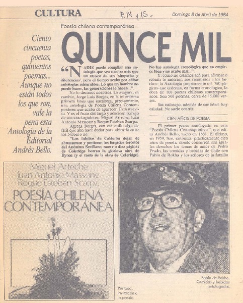 Scarpa, Roque Esteban - Autores chilenos - Massone, Juan Antonio - Arteche, Miguel - Poesía chilena contemporánea