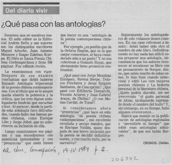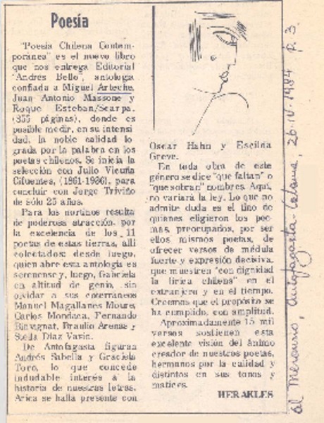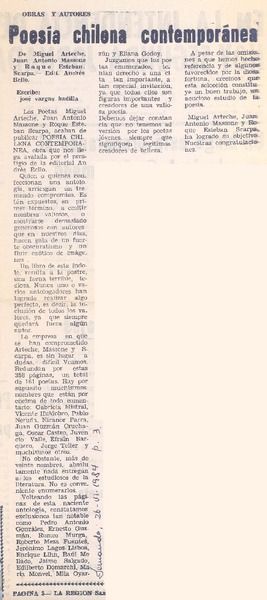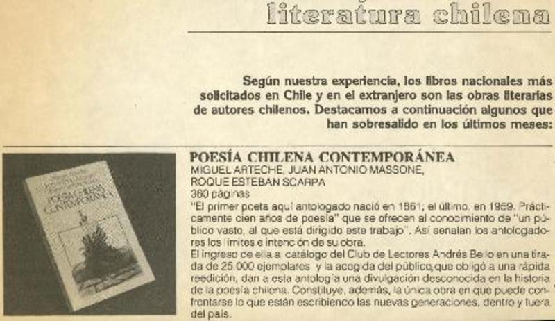 "Poesía chilena contemporánea" [artículo] Jorge Marchant.