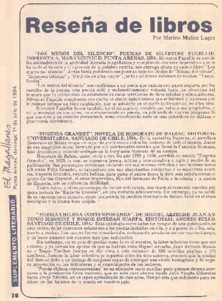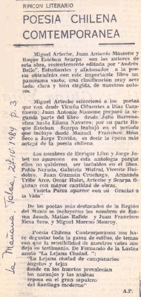 "Poesía chilena contemporánea" [artículo] Marino Muñoz Lagos.