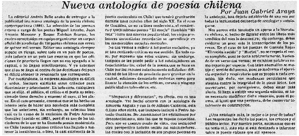 Nueva antología de poesía chilena [artículo] Juan Gabriel Araya G.