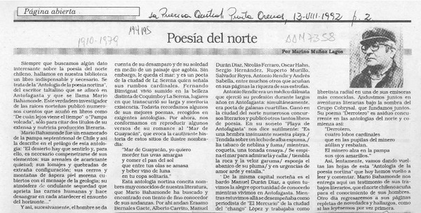 Poesía del norte [artículo] Marino Muñoz Lagos.