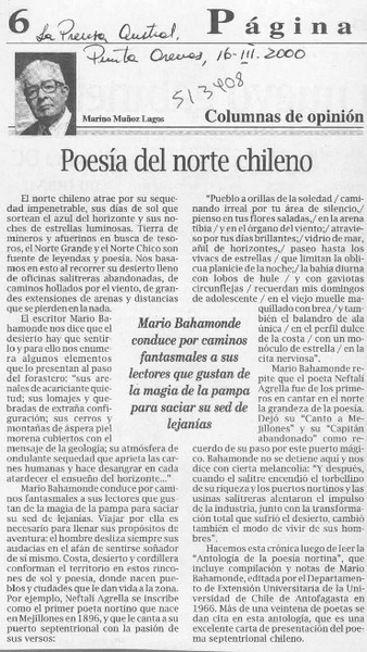 Poesía del norte chileno [artículo] Marino Muñoz Lagos