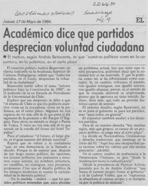 Académico dice que partidos desprecian voluntad ciudadana [artículo].