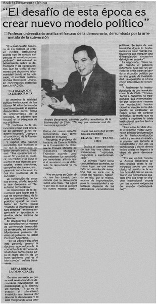 "El desafío de esta época es crear nuevo modelo político" [artículo] :