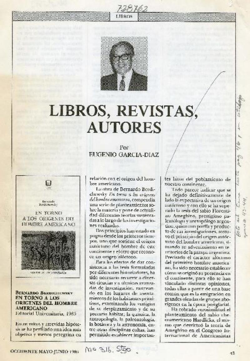 Libros, revistas, autores [artículo] Eugenio García-Díaz.