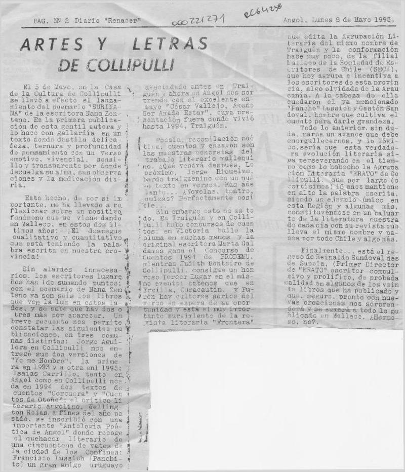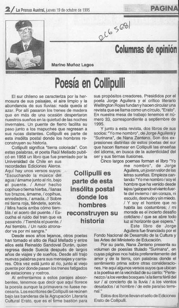 Poesía en Collipulli [artículo] Marino Muñoz Lagos.