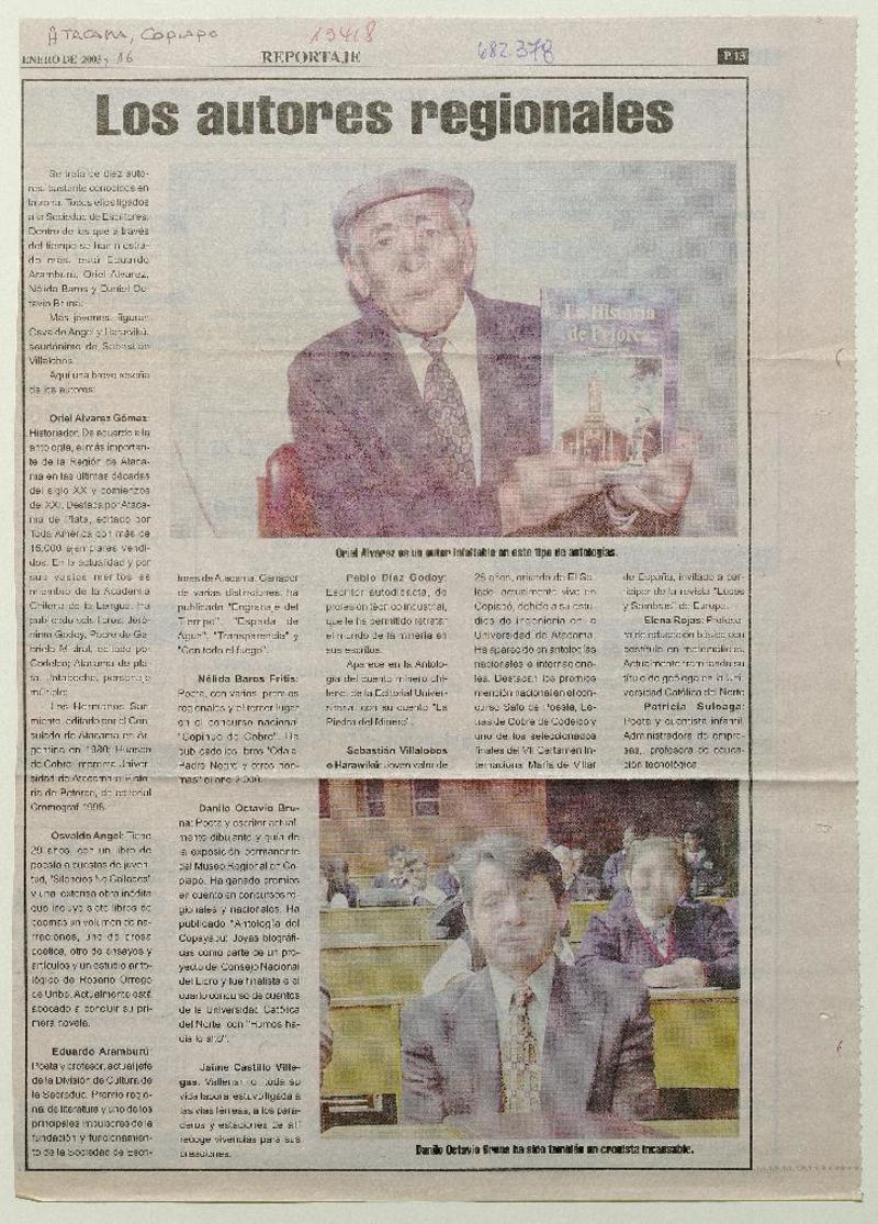 Autores chilenos - Alvarez G., Oriel - Aramburu, Eduardo - Bruna, Danilo Octavio - Historia de Petorca - Castillo Villegas, Jaime - Angel, Osvaldo - Silencios no callados - Barros Fritis, Nélida - Copihue de cobre - Humos hacia lo alto