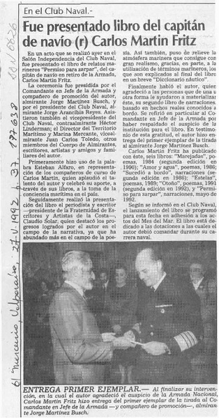 Fue presentado libro del capitán de navío (r) Carlos Martin Fritz [artículo].