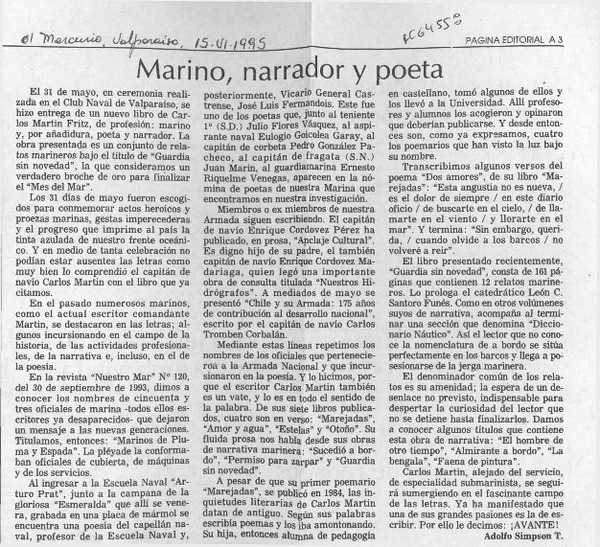 Marino, narrador y poeta [artículo] Adolfo Simpson T.