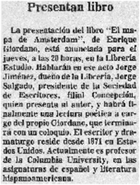 Mapa de Amsterdam - Giordano, Enrique - Autores chilenos