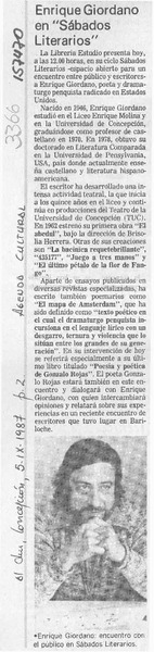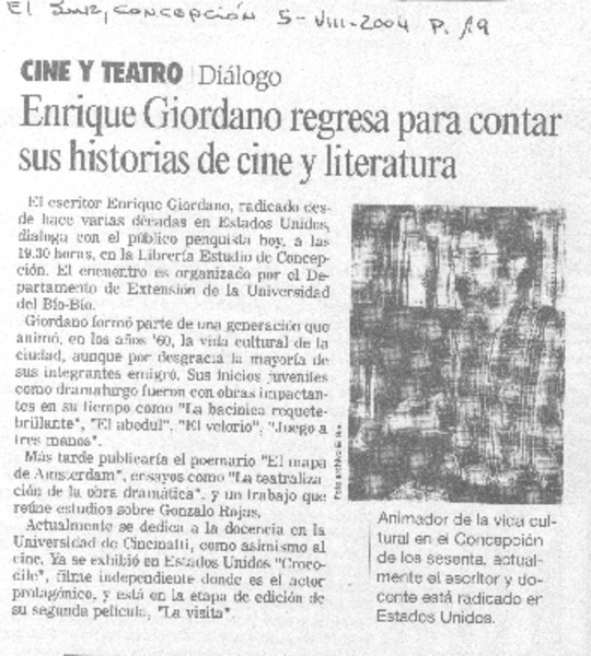 Enrique Giordano regresa para contar sus historias de cine y literatura. [artículo]
