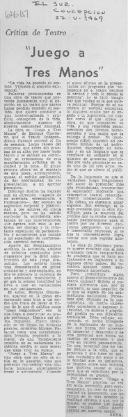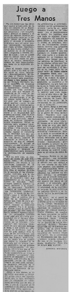 "Juego a tres manos" presenta Teatro Caracol [artículo].