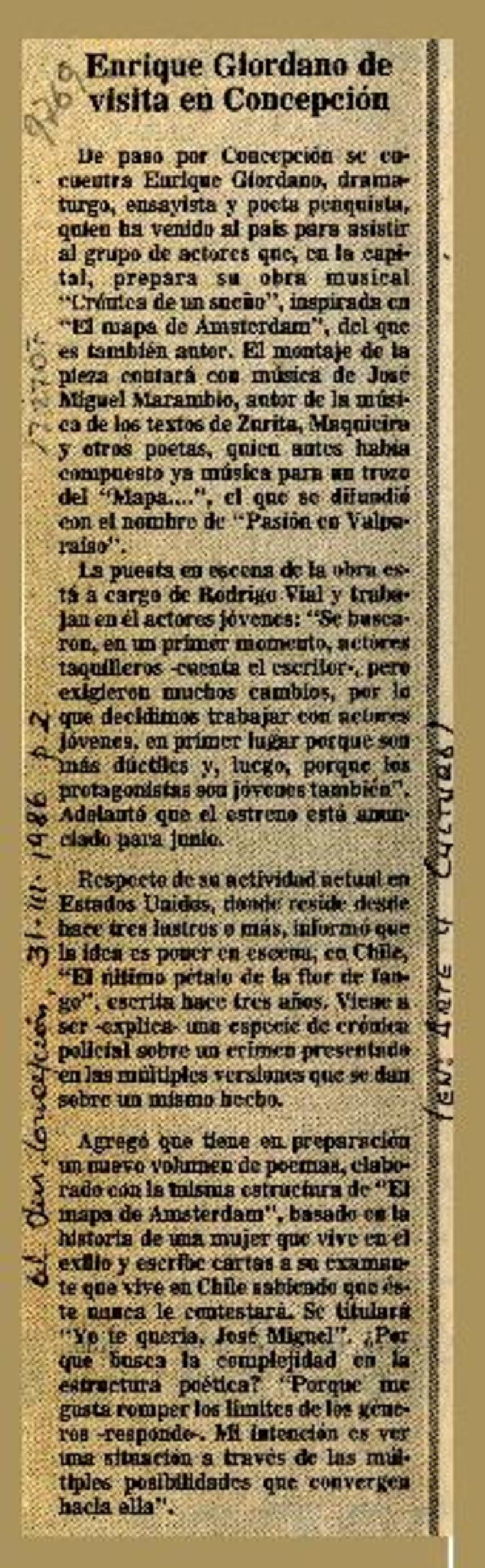 Autores chilenos - Giordano, Enrique - Crónica de un sueño