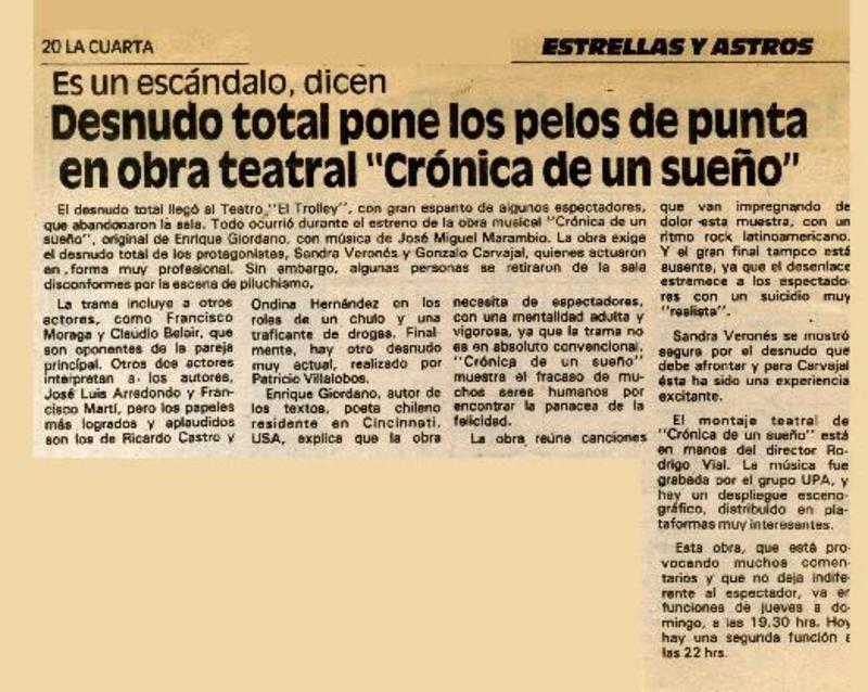Desnudo total pone los pelos de punta en obra teatral "Crónica de un sueño" [artículo].