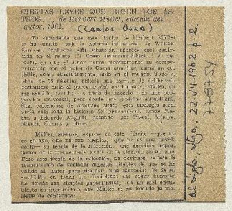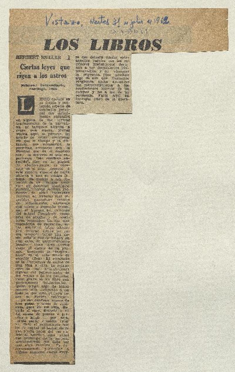 Müller, Herbert - Autores chilenos - Ciertas leyes que rigen a los astros