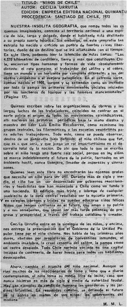 "Niños de Chile" [artículo] Marino Muñoz Lagos.