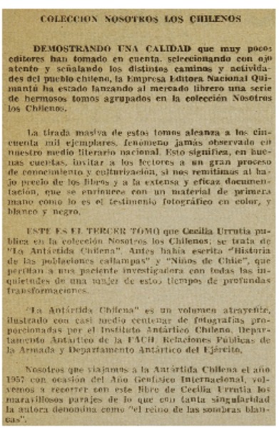 Colección "nosotros los chilenos" [artículo] Marino Muñoz Lagos.