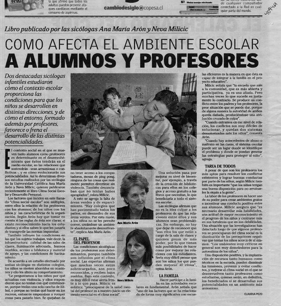 Autoras chilenas - Milicic, Neva - Arón, Ana María - Clima social escolar y desarrollo personal