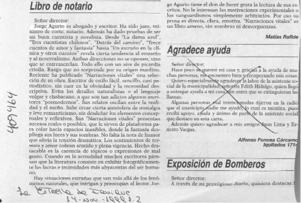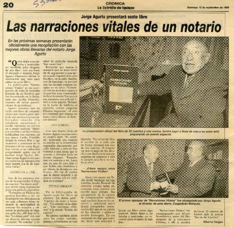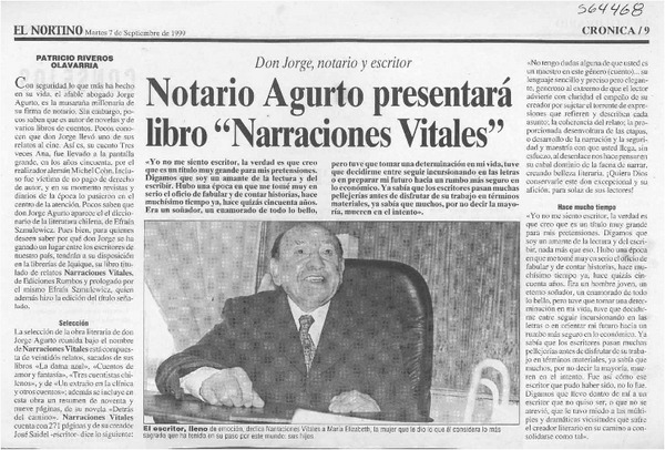 Notario Agurto presentará libro "Narraciones Vitales" [artículo] Patricio Riveros Olavarría