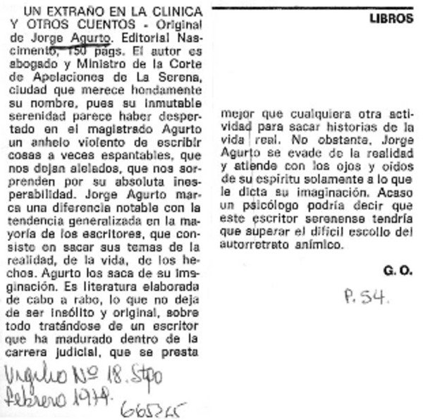 Un extraño en la clínica y otros cuentos [artículo] G.O.