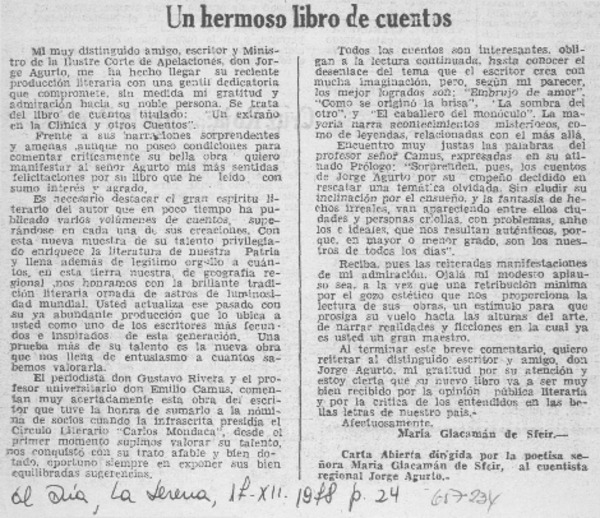 Un hermoso libro de cuentos [artículo] María Giacamán de Sfeir.