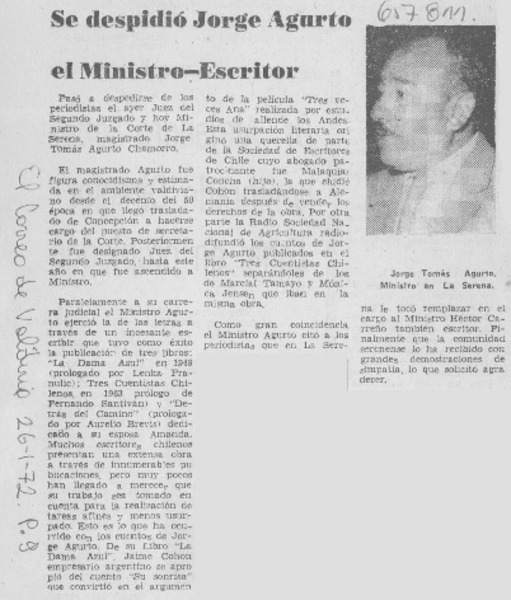 Se despidió Jorge Agurto el ministro-escritor [artículo]