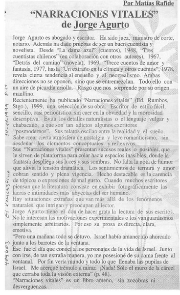 Autores chilenos - Agurto, Jorge - Narraciones vitales
