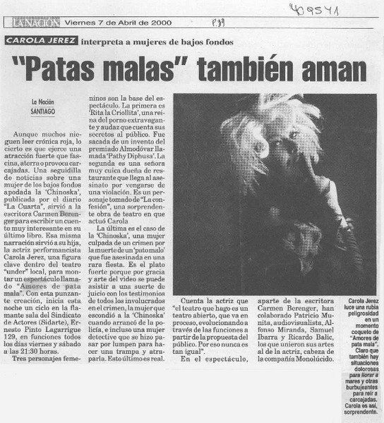 Mujer con triple personalidad se pone a hablar como contratada Carolina jerez mezcla teatro y video instalación en la obra "Electroshock" [artículo] : Rodrigo Castillo R.