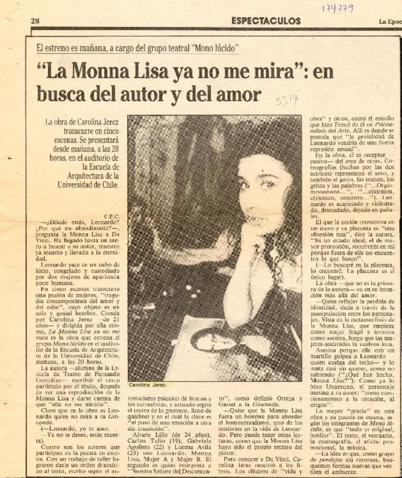 Autoras chilenas - Jerez, Carolina - Monna Lisa ya no me mira, La
