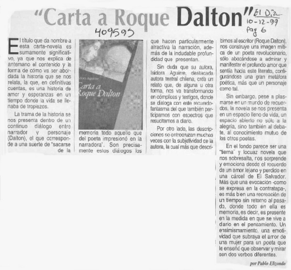 "Carta a Roque Dalton" [artículo] Pablo Elizondo