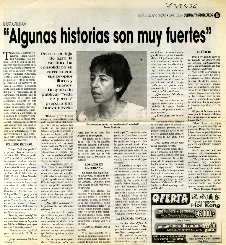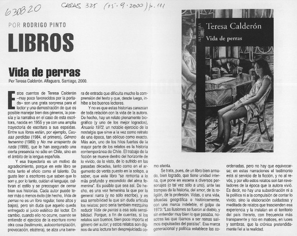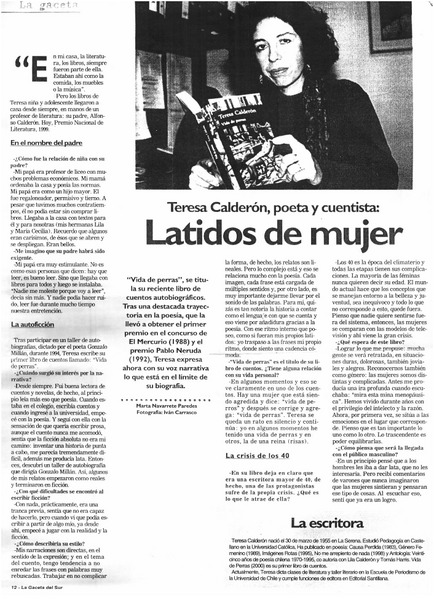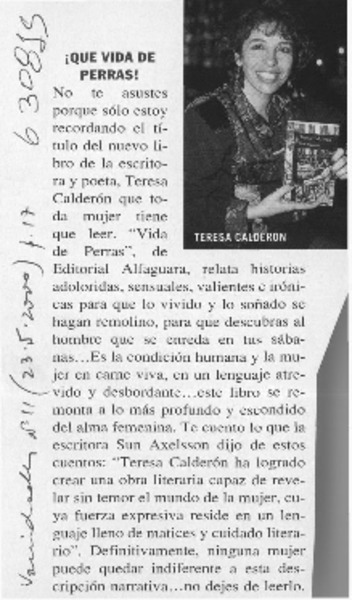 Autoras chilenas - Entrevistas - Calderón, Teresa - Vida de perras