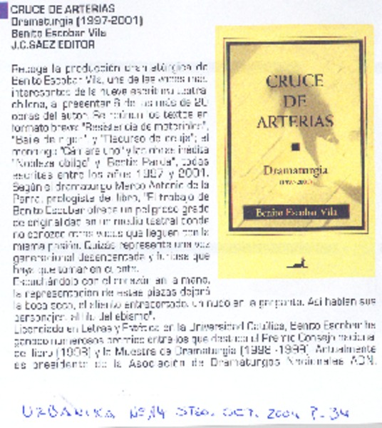 Autores chilenos - Escobar, Benito - Cruce de arterias