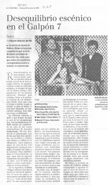 Desequilibrio escénico en el Galpón 7 : [artículo] Eduardo Guerrero del Río.
