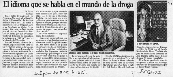 Autores chilenos - Sáez-Godoy, Leopoldo - El lenguaje secreto de las drogas
