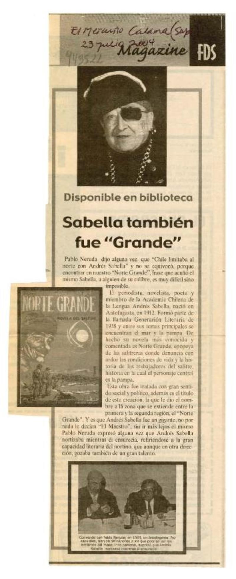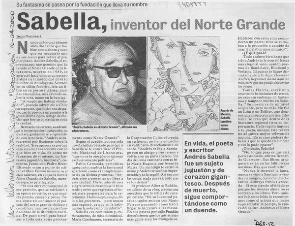 Sabella, inventor del norte grande [artículo] Sergio Mardones L.
