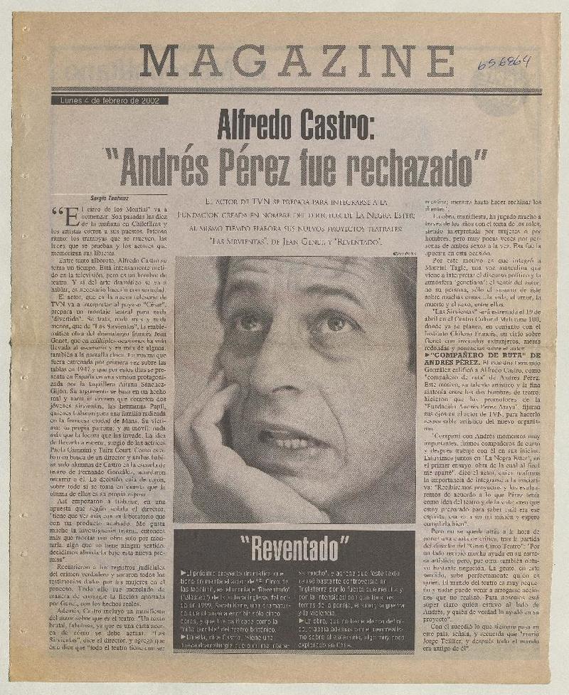 Alfredo Castro, "Andrés Pérez fue rechazado" [artículo] Sergio Tanhnuz.