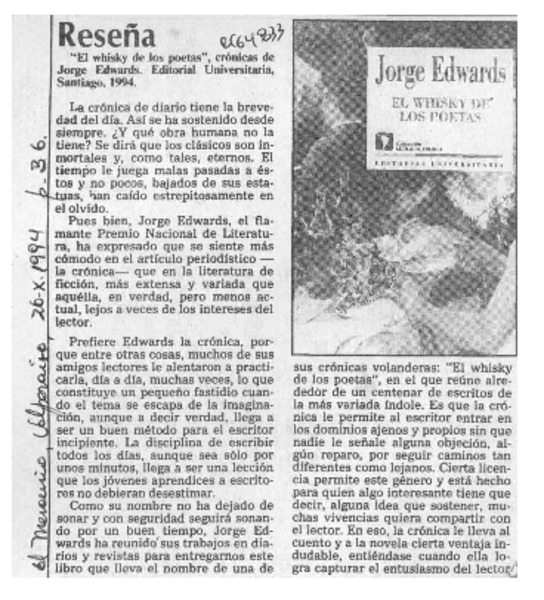 Jorge Edwards, agudo observador de la realidad [artículo] E. Orellana.