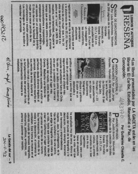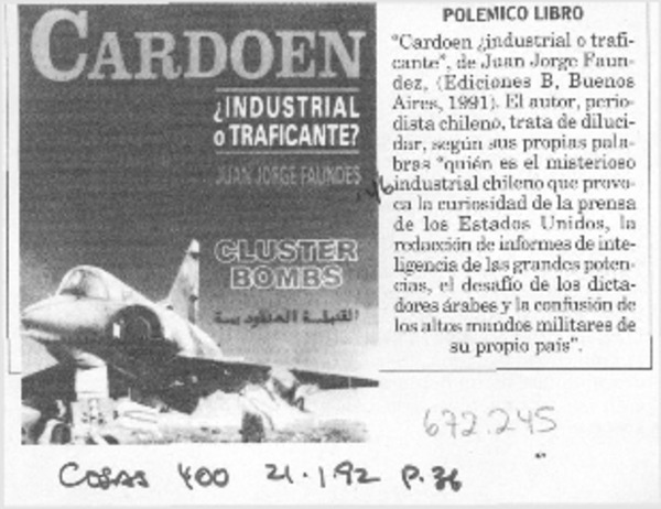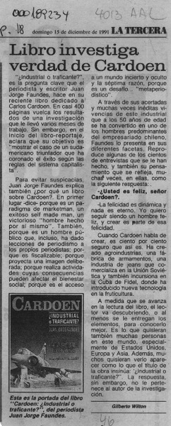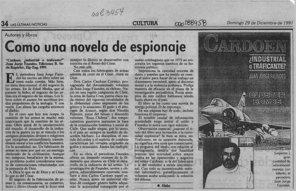 Libro investiga verdad de Cardoen [artículo] Gilberto Wilton.
