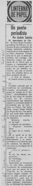 Selección de poemas editó corresponsal de "La Tercera". [artículo]